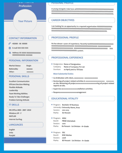 Modern Professional Resume Template Price Starting From PKR-1500